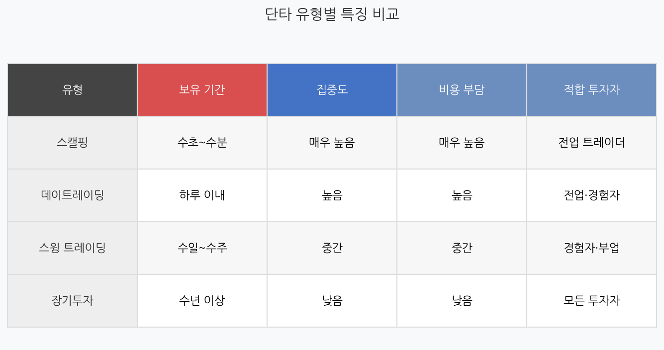 • 데이트레이딩·스윙·스캘핑 등 보유 기간에 따라 종류가 다름