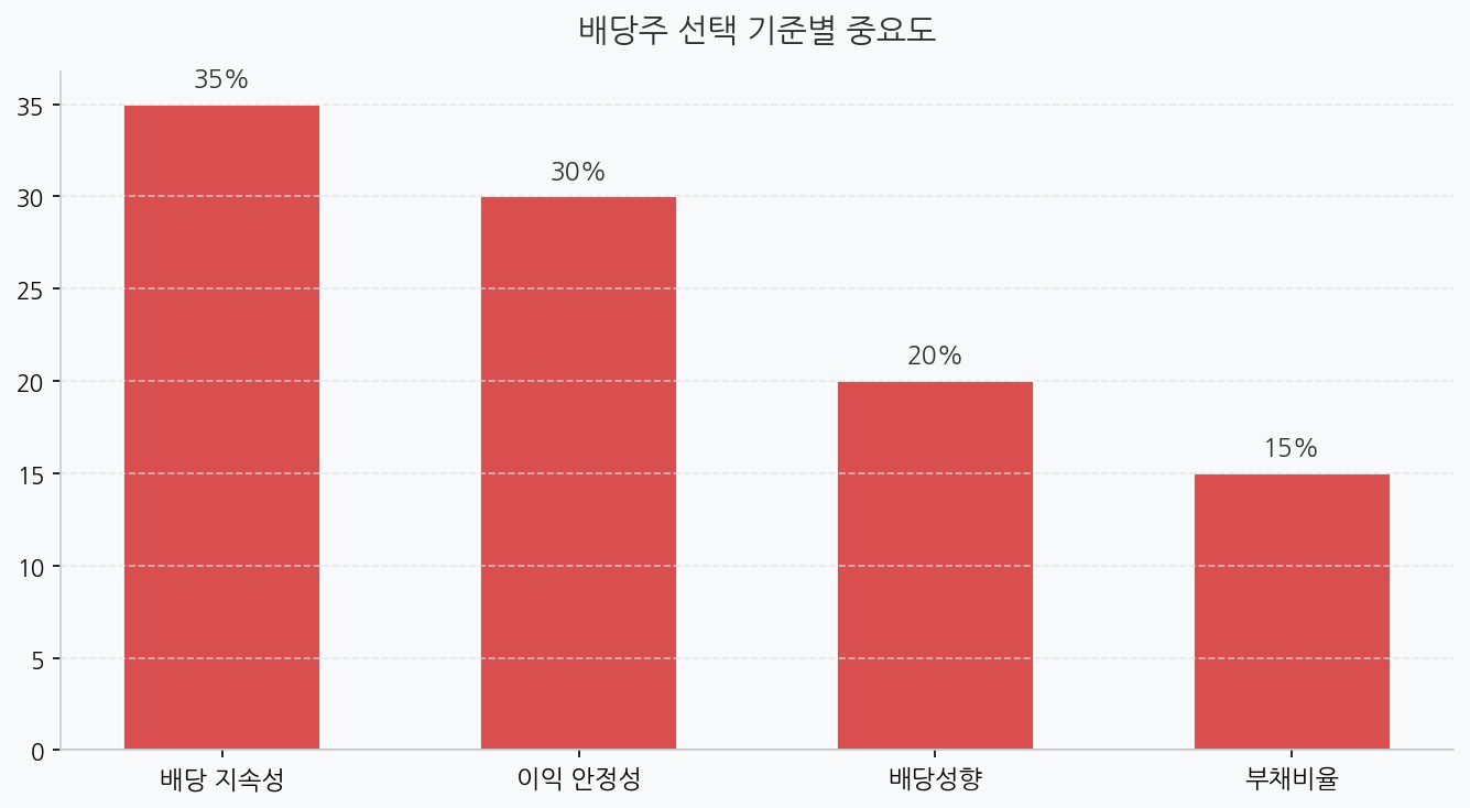 - 배당 지속성, 배당성향, 이익 안정성, 부채비율 4가지를 반드시 확인하세요.