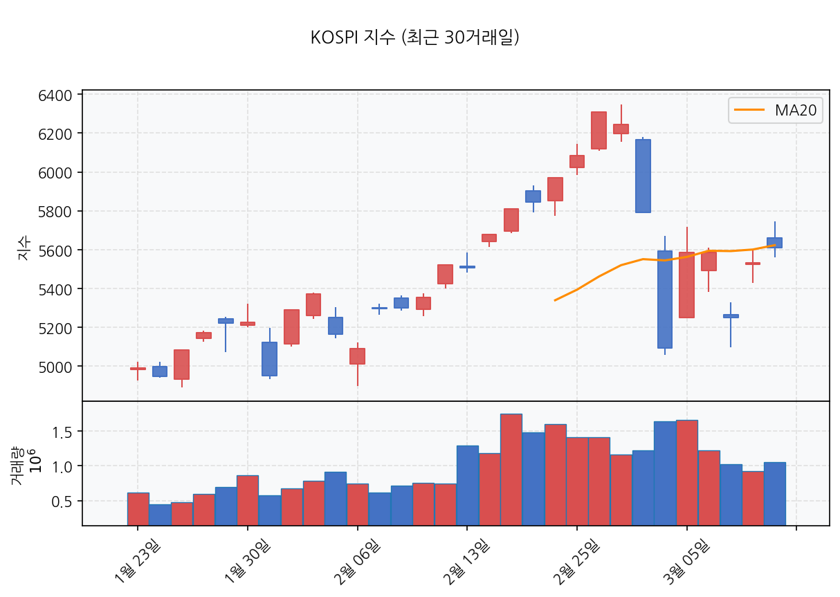 | 오늘 코스피 시황 [3/9] — 중동발 오일 쇼크와 서킷브레이커 발동 (1) | 2026.03.09 |