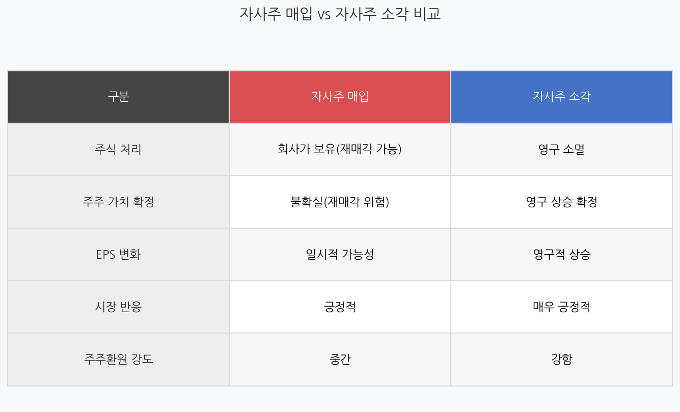 자사주 매입 vs 소각 — 차이점