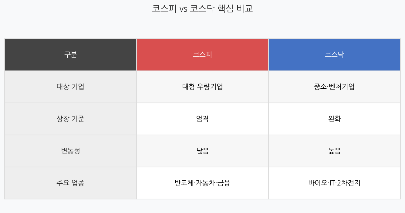 코스닥 vs 코스피 — 핵심 차이