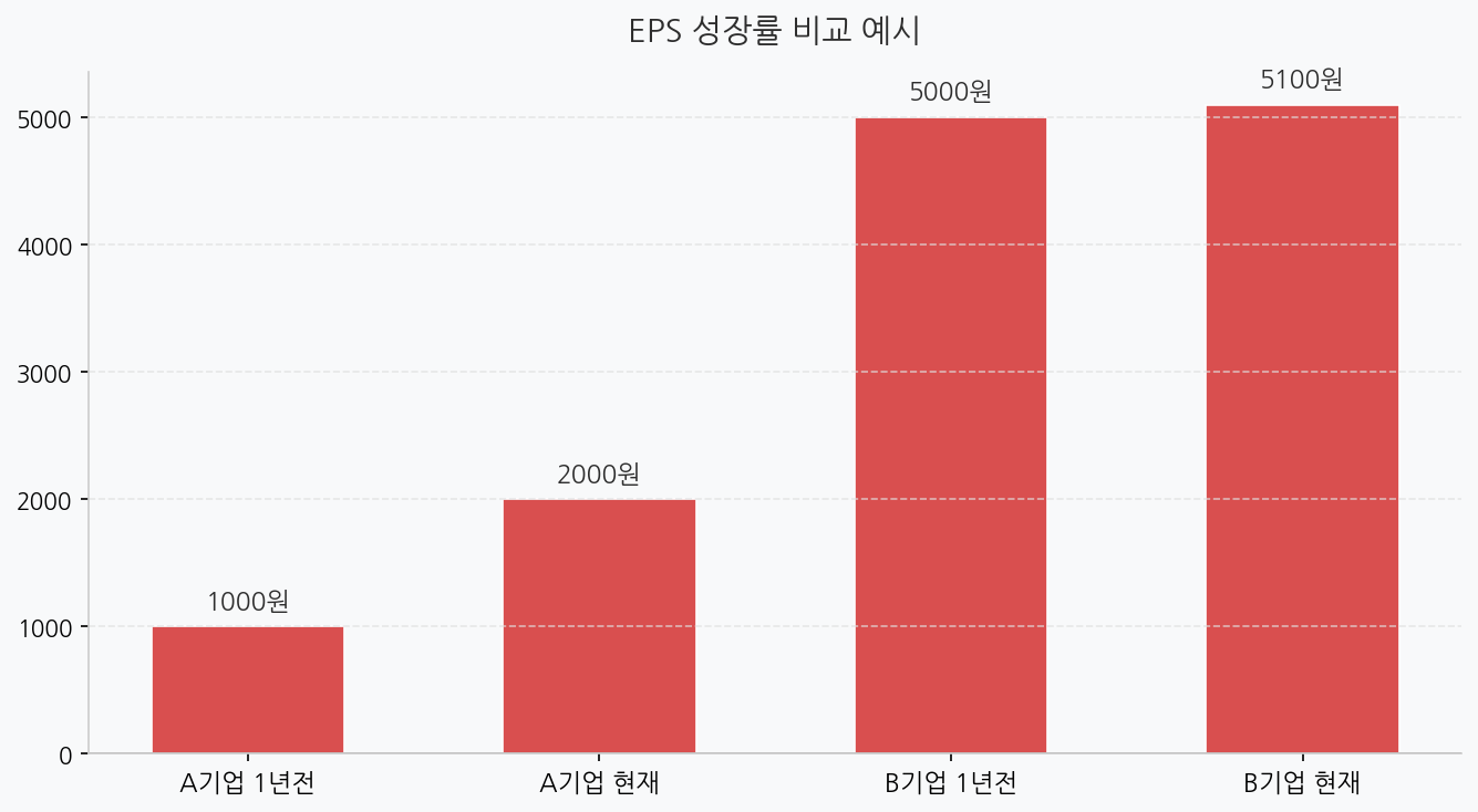 | 구분 | 1년 전 EPS | 현재 EPS | 성장률 |