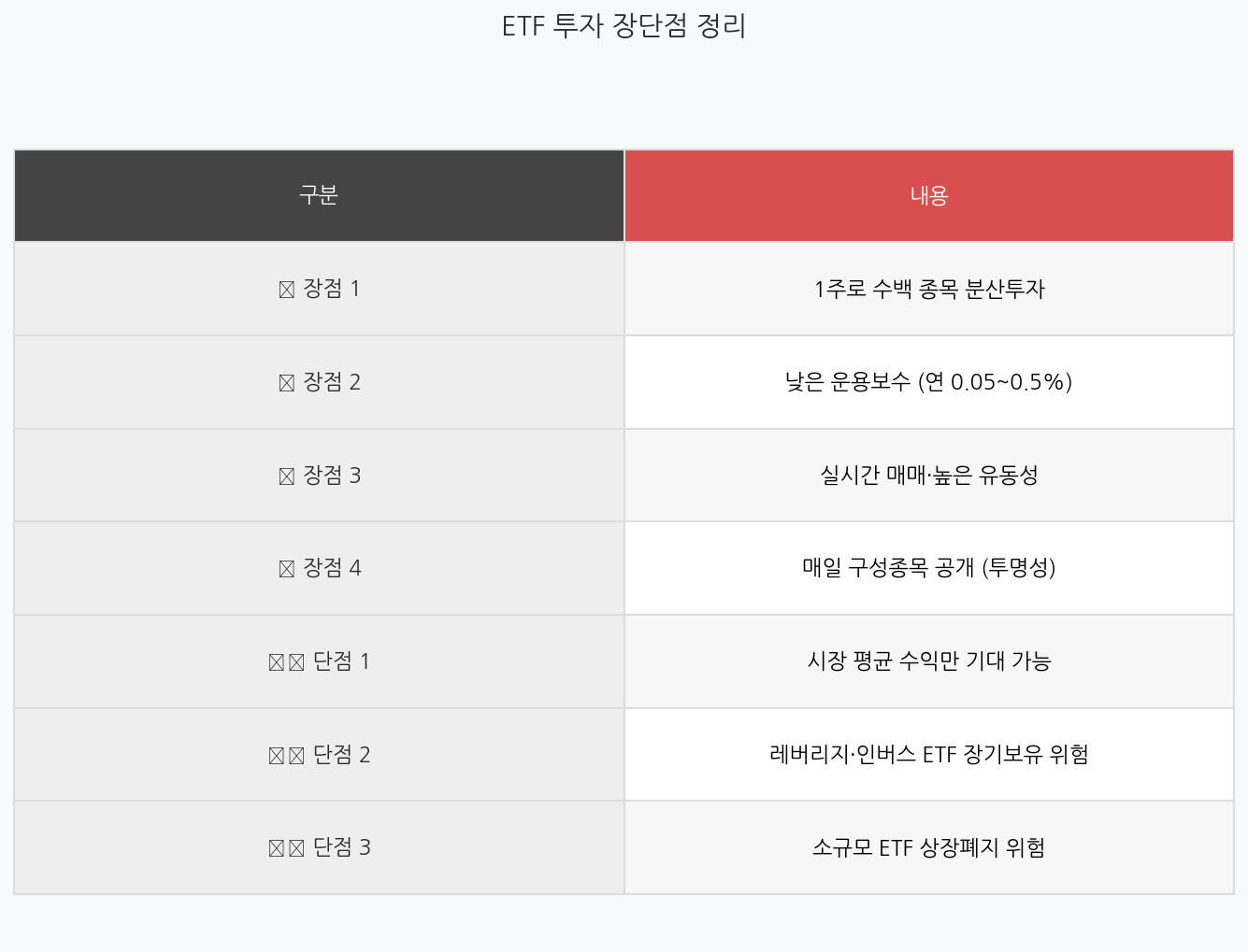 그림 4. ETF 투자 장단점 정리