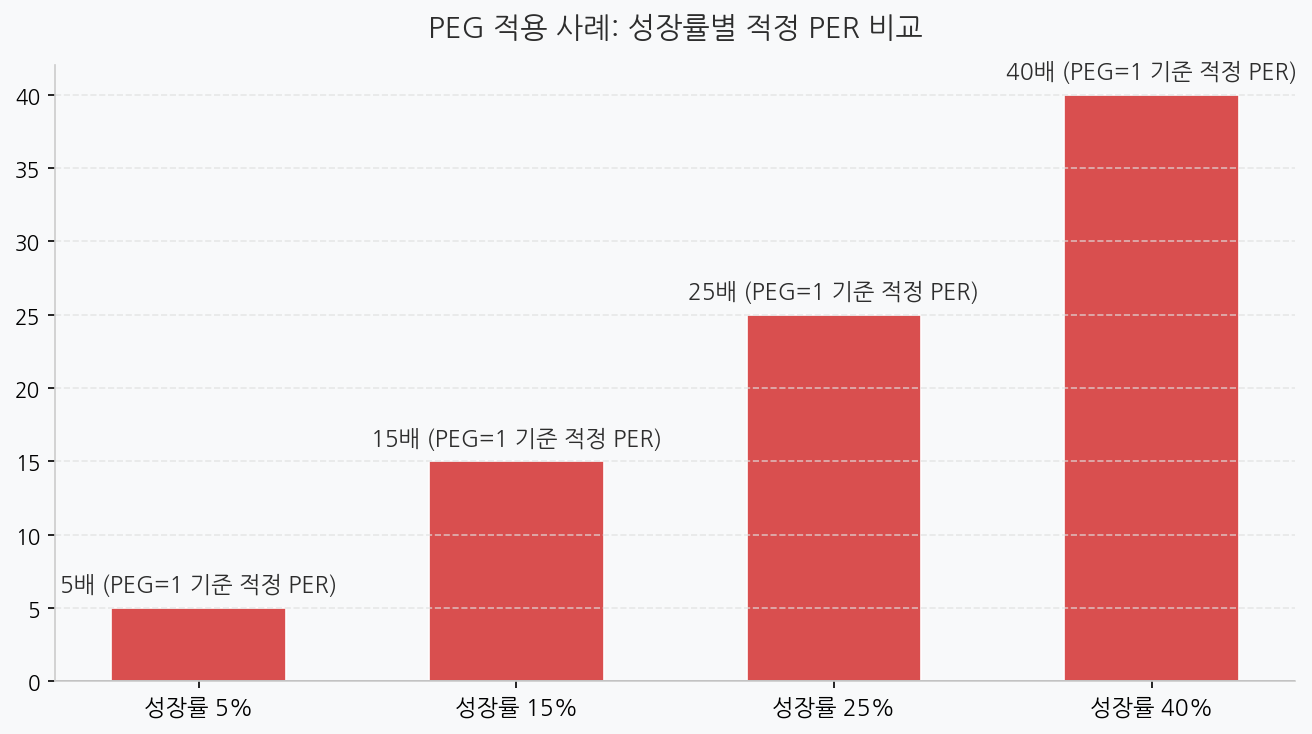 결론: PER이 높아도 성장률이 훨씬 높다면 오히려 저평가일 수 있습니다. PEG는 PER의 이런 한계를 보완합니다.